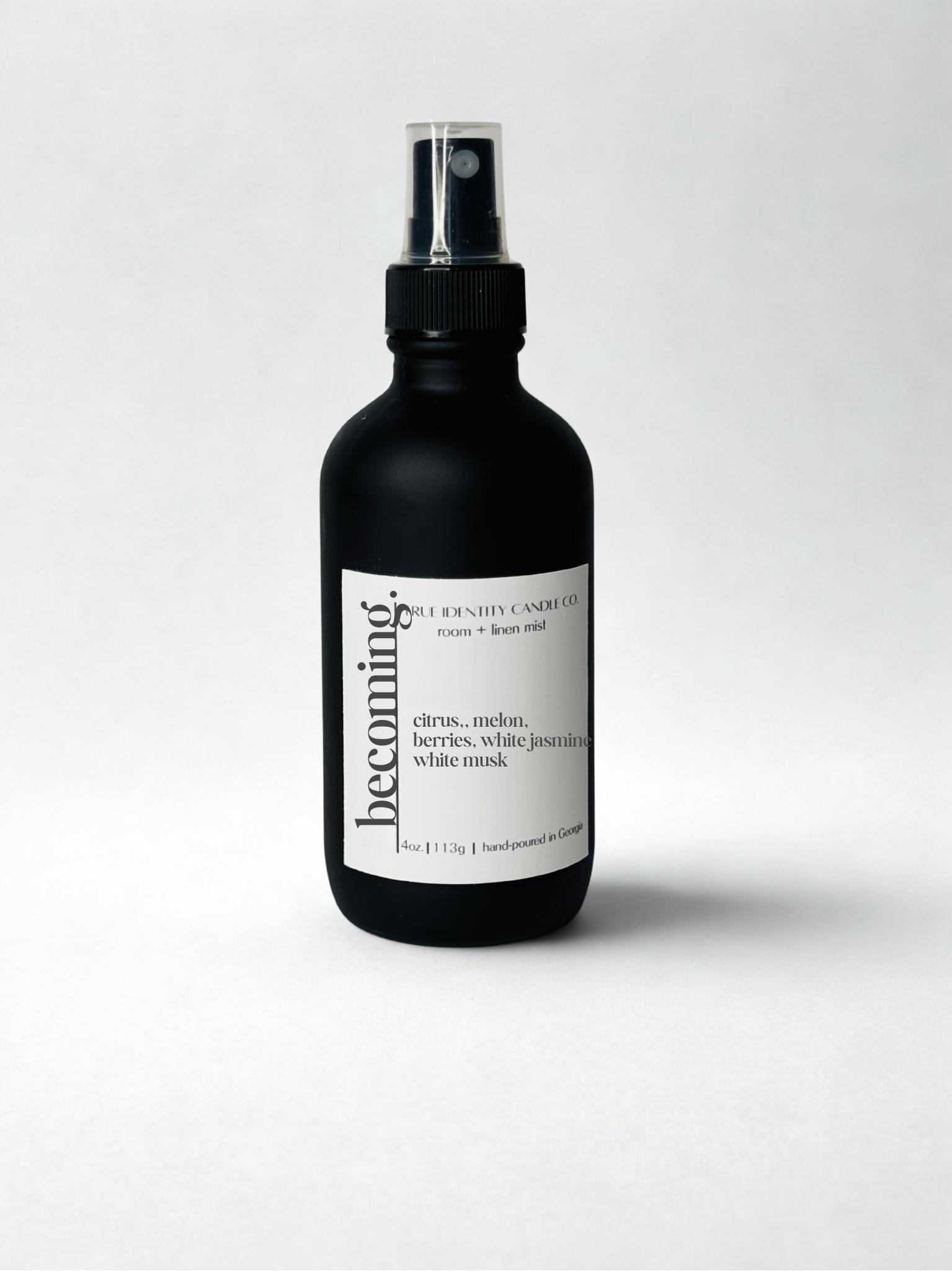 Room + Linen Mist made with phthalate-free and non toxic fragrance oils in a matte black 4 oz. glass spray bottle. Breathe in freshness, not chemicals!