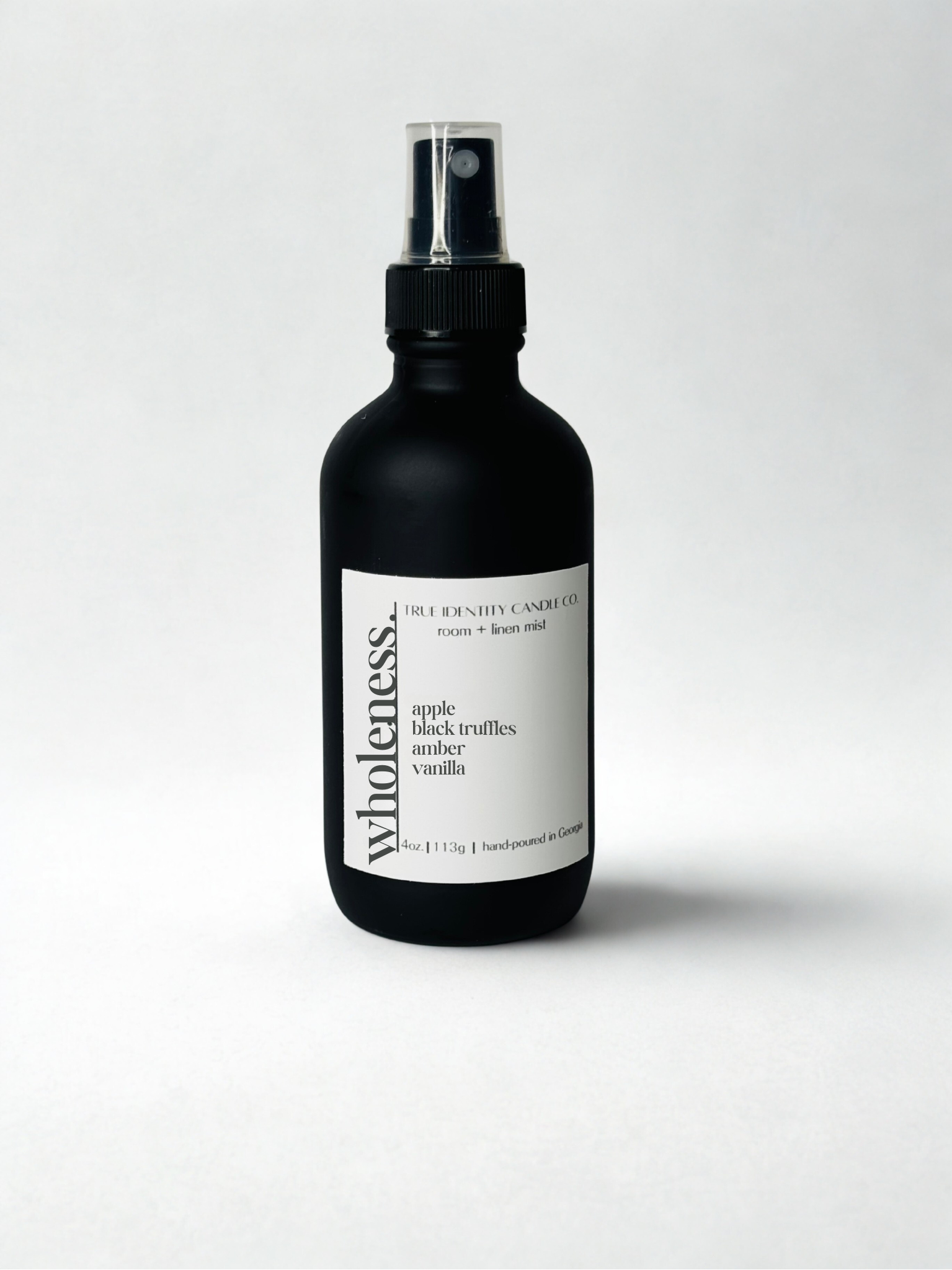 Room + Linen Mist made with phthalate-free and non toxic fragrance oils in a matte black 4 oz. glass spray bottle. Breathe in freshness, not chemicals!